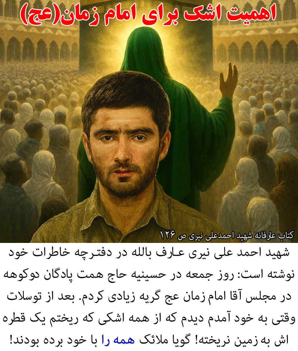 شهید نیری: دیدم از آن همه اشکی که برای امام زمان(عج) ریختم یک قطره اش به زمین نریخته! گویا ملائک همه را با خود برده بودند!