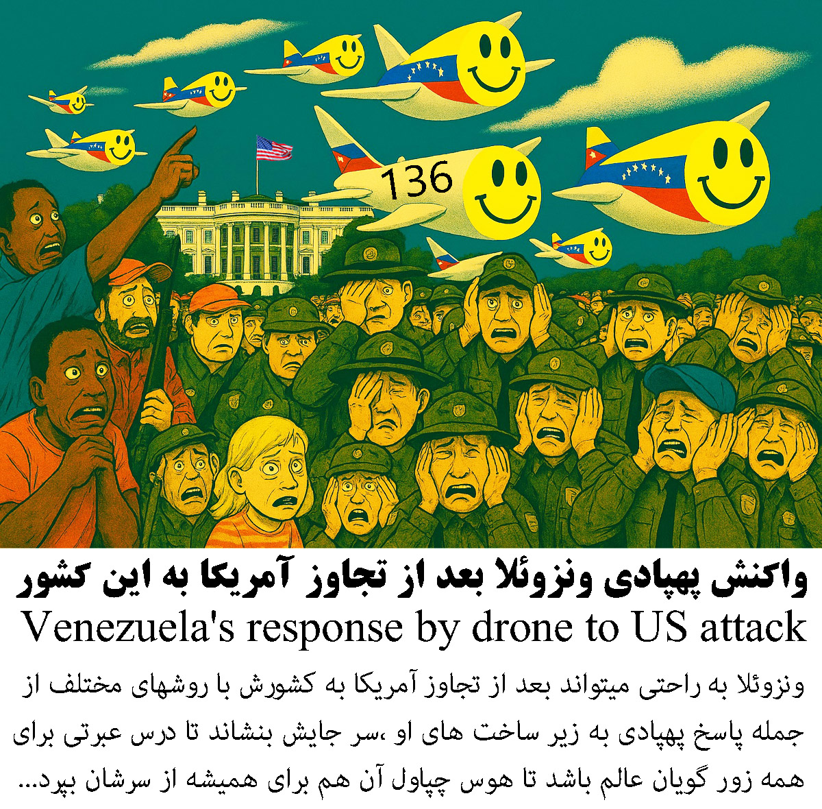 ونزوئلا به راحتی میتواند بعد از تجاوز آمریکا به کشورش با روشهای مختلف از جمله پاسخ پهپادی به زیر ساخت های او ،سر جایش بنشاند تا درس عبرتی برای همه زور گویان عالم باشد تا هوس چپاول آن هم برای همیشه از سرشان بپرد...