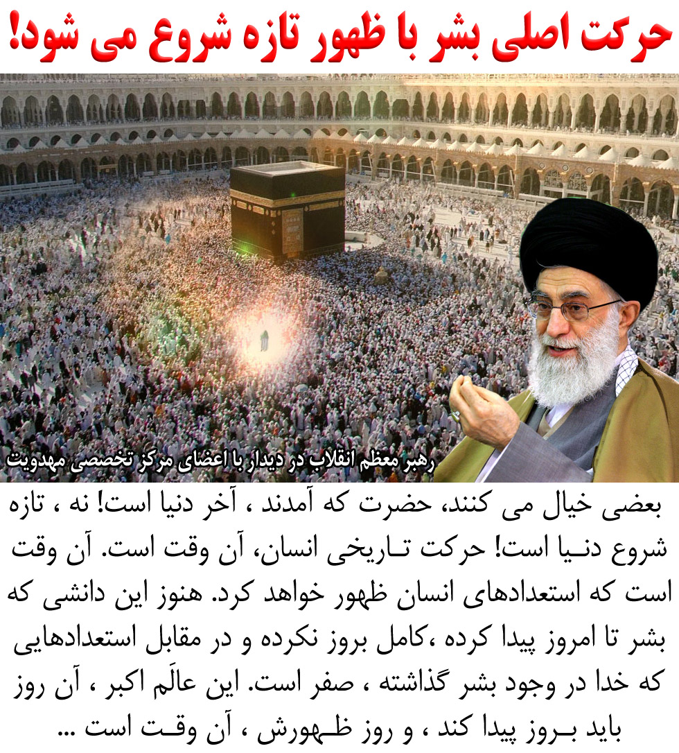 رهبر انقلاب: بعضی خیال می کنند، حضرت که آمدند، آخر دنیا است! نه، تازه شروع دنیا و شروع تاریخ بشریّت است!